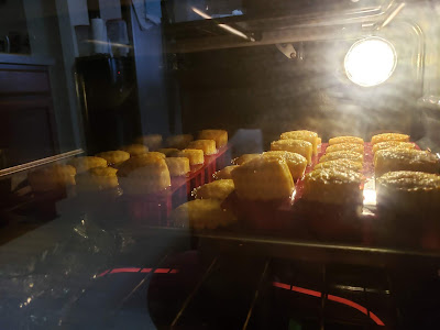 Caneles almost done baking. Rotate pan since inner silicone not expose to enough heat
